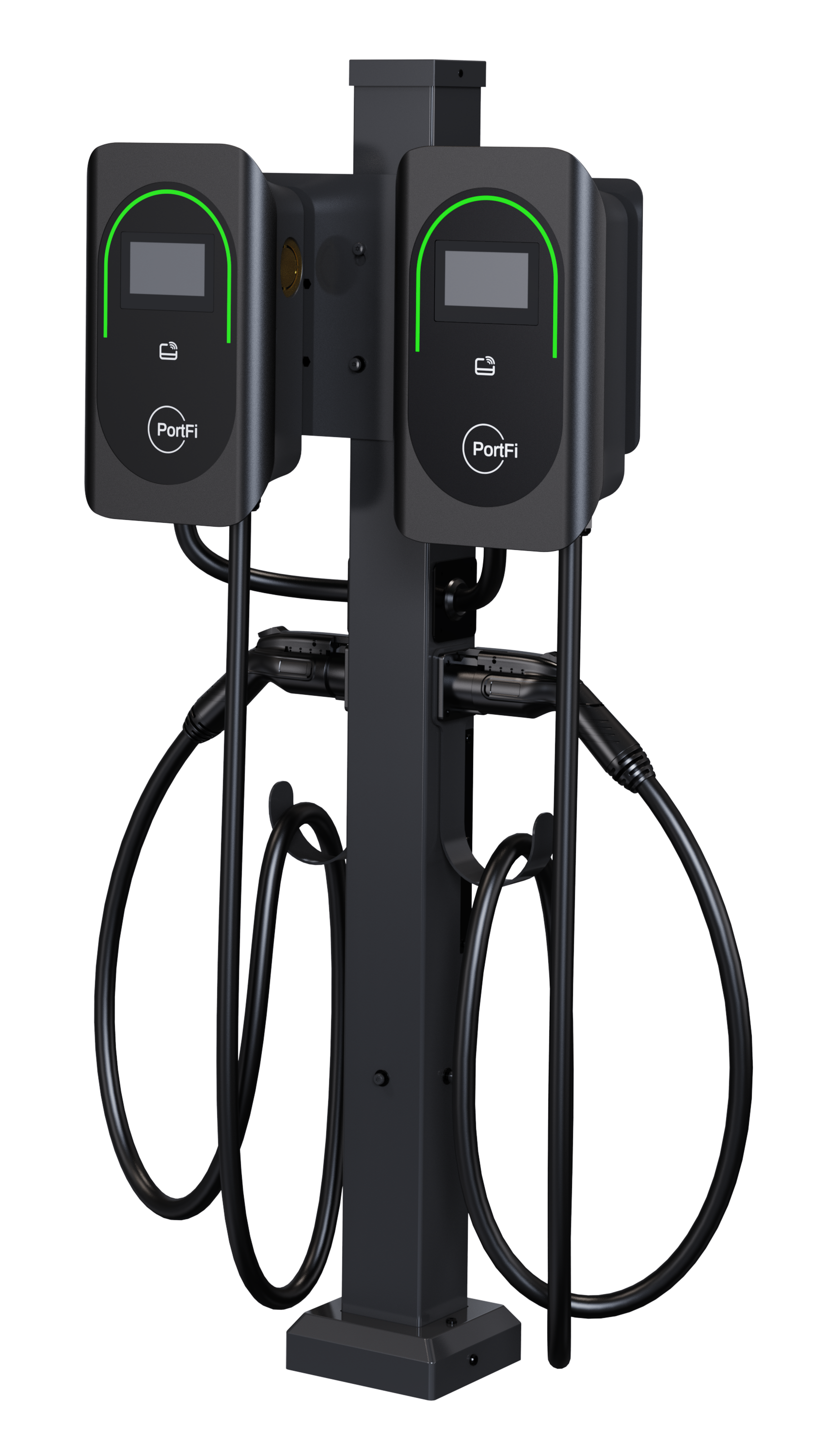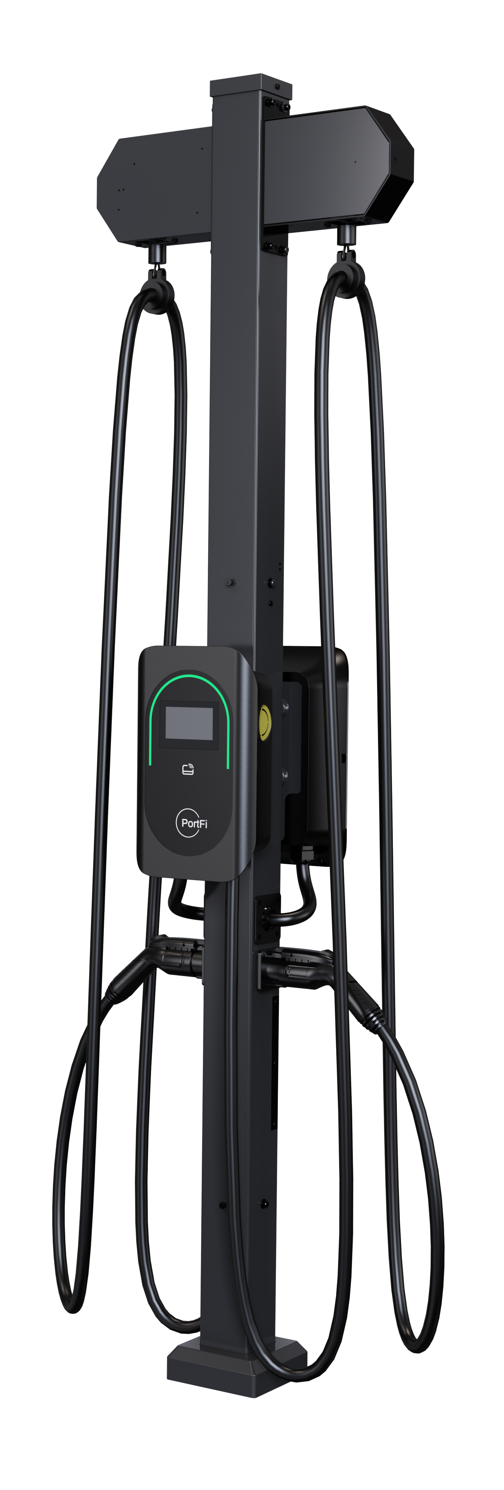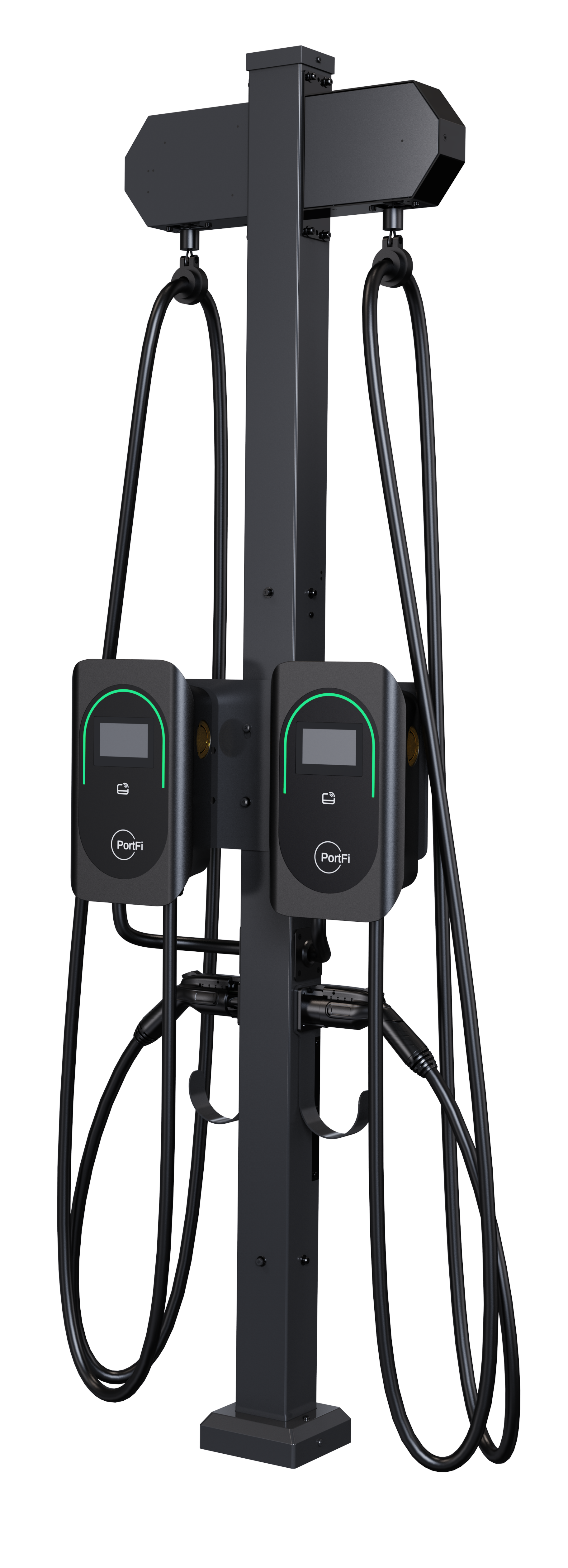 - Modular design compatible with all PortFi 1st/2nd generation chargers, pedestals, cable management systems, and accessories