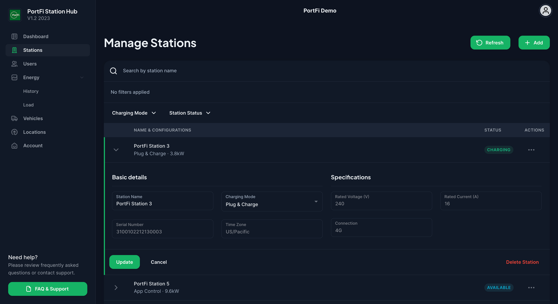 - Complimentary lifetime access to PortFi Station Hub charging management dashboards (the "Essential" tier software subscription)