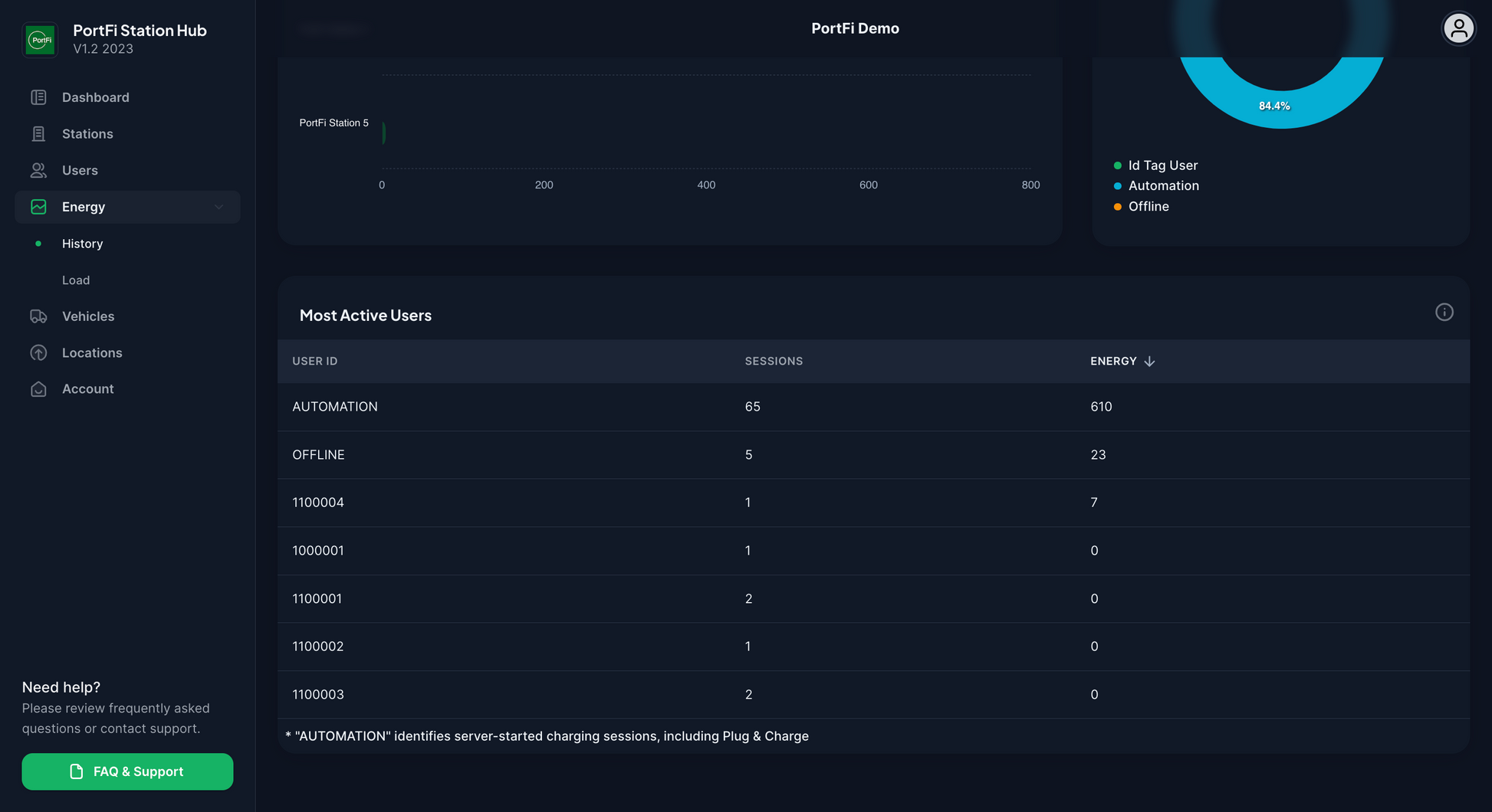 - Complimentary charging station dashboard & console: view station status, charging & energy history and execute smart charging functions