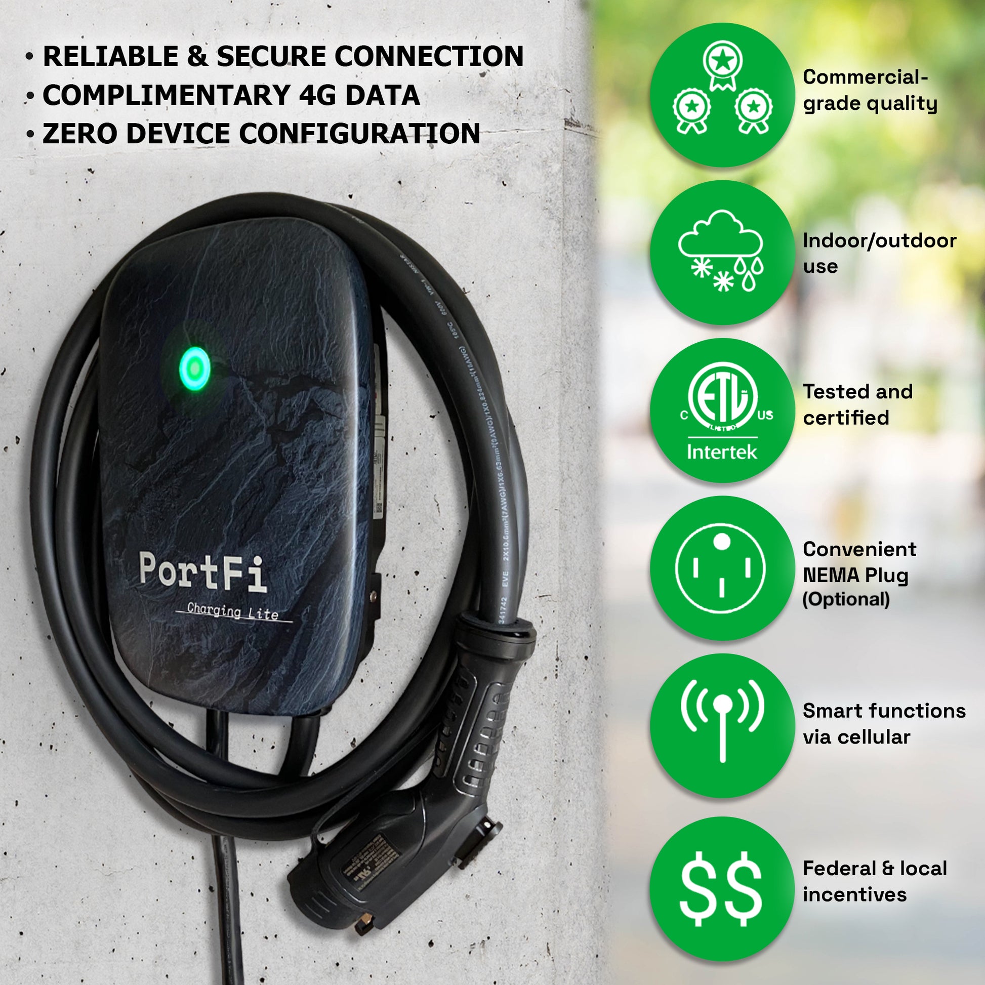 - PortFi Smart Premium 4G Level 2 EV Charging Station (40A/9.6kW or 32A/7.7kW).